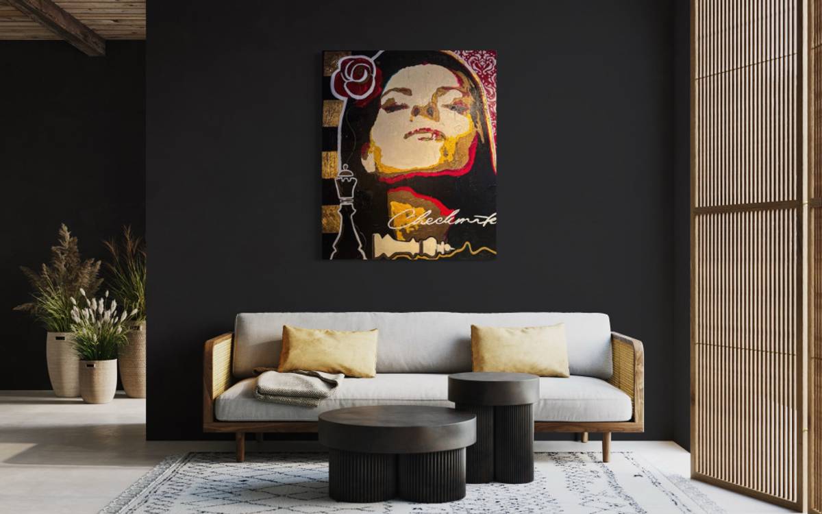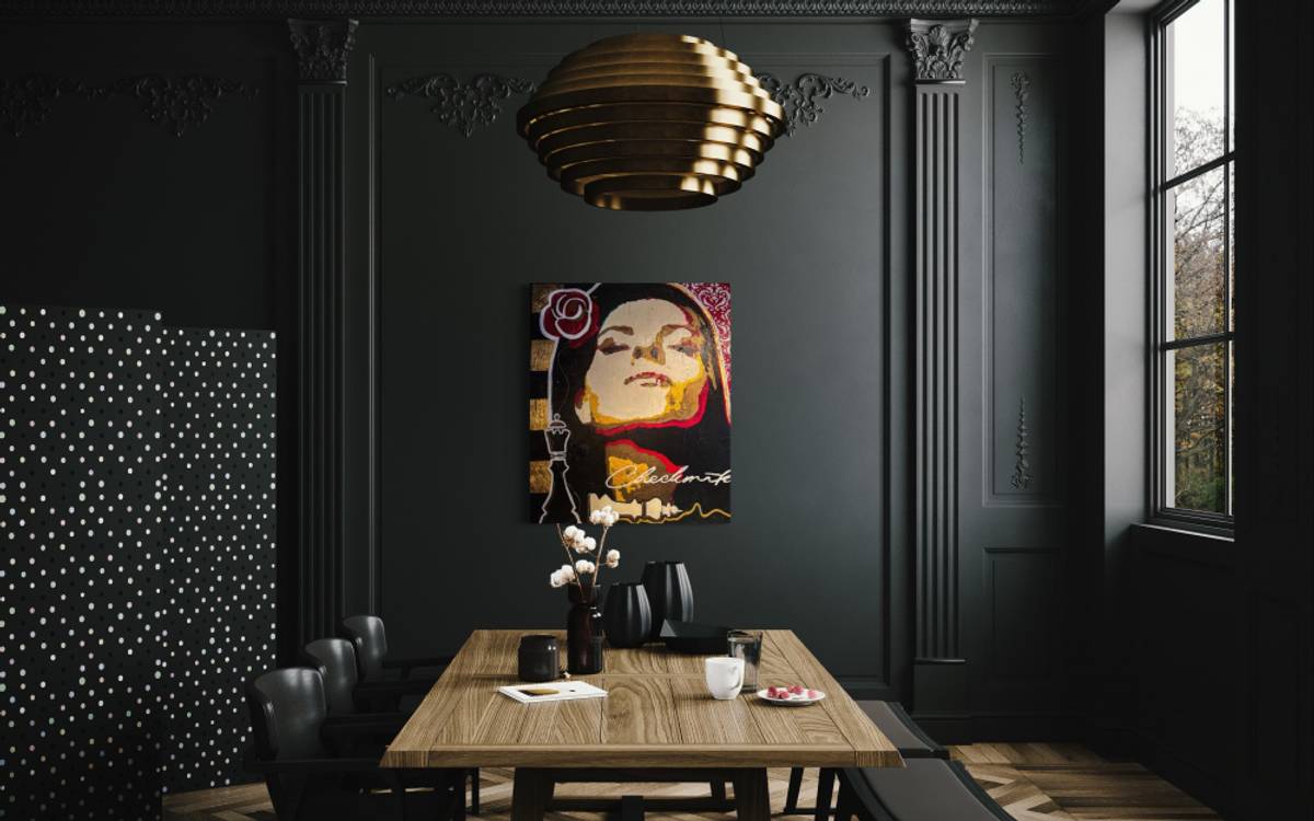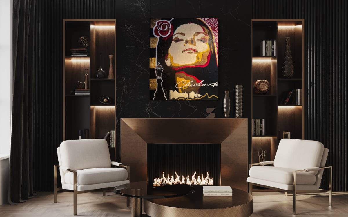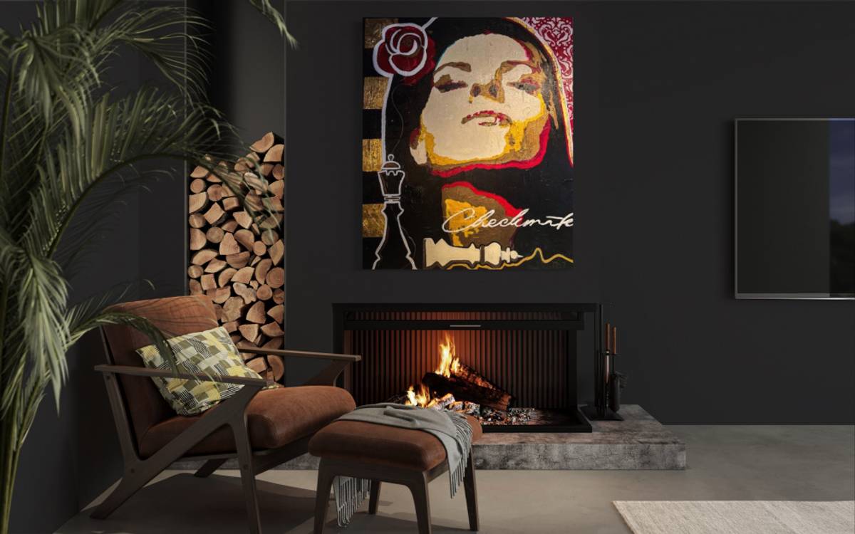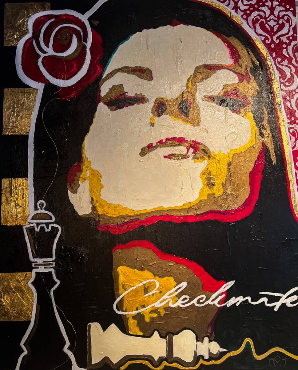 Motivet fremstiller en kvinne, som har vunnet spillet i sjakk. Ruter av et sjakkbrett i sort og gull er komponert, og to sjakkbrikker er et blikkfang. Dronningen står oppreist og kongen ligger nede - der teksten «Checkmate» viser seier. Symbolikken i bildet omhandler hjertet som er kapret i sjakkmatt. Da hjertene selv har tatt sitt valg, finnes ingen andre veier å gå…enn å overgi seg til kjærligheten. Tiden for å spille er over, kjærligheten seirer til slutt… og kongen og dronningen er begge vinnere av hverandre.