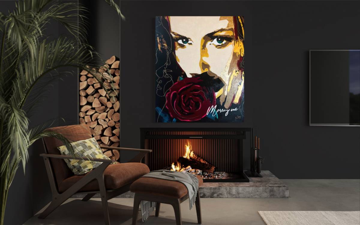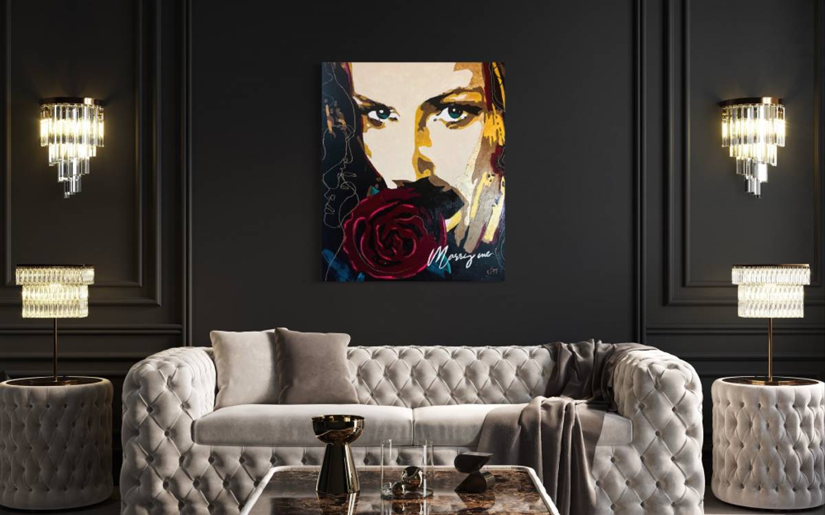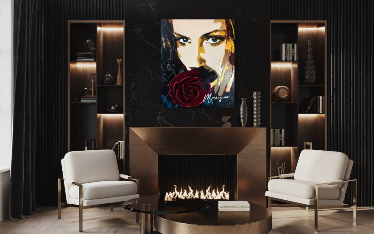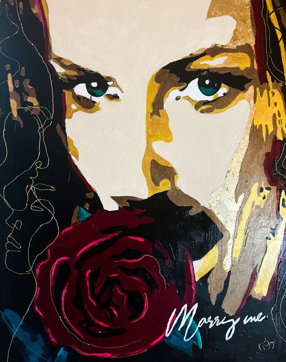 Motivet er en kvinne som holder en rose og utrykker et ønske om å gifte seg med sin kjæreste. Rosen symboliserer en dyp kjærlighet som sammen med «sjelens speil», øynene, bekrefter at kjærligheten er ekte. Lineart av et kyssende par, utspiller seg i håret på kvinnen.