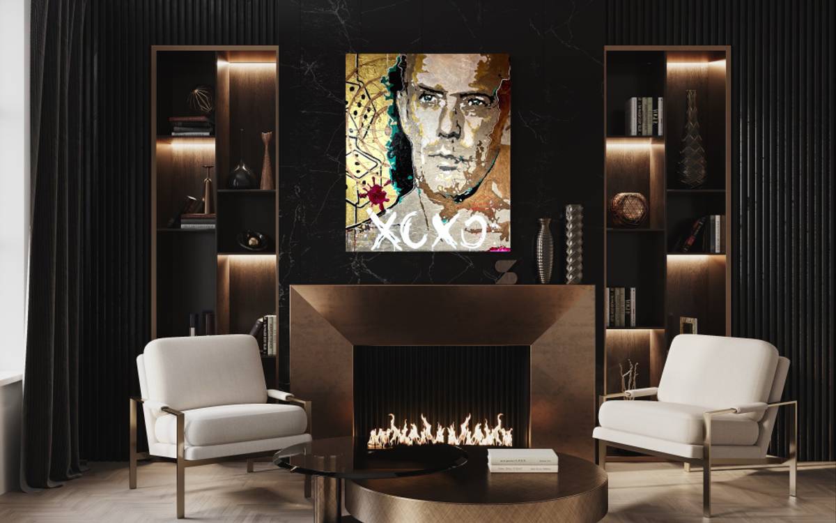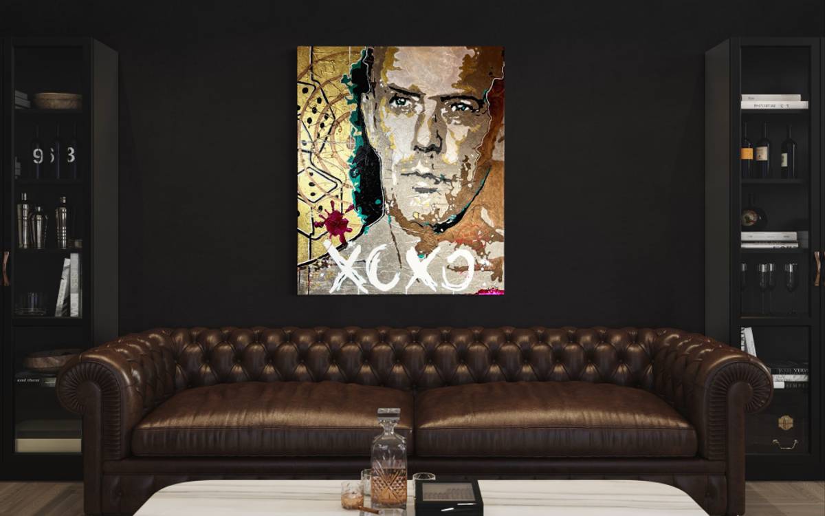 Bildet viser en mann i sin beste alder. Blikket er fast, drømmende og målrettet. I halsgropen vises et kyssemerke mens to terninger er kastet der øynene viser antallet seks. Ringene symboliserer at han er i skuddet, og han selv vet å treffe rett. Malingsplasj i rosa viser en lekenhet i livet og skriften XOXO, som betyr kyss og klem, understreker mannens flørtende men gode væremåte. Han er omringet av gull, som symboliserer livets rikdom. Selv om velstand kan være en drivkraft, symbolisert av fargen grønn i øynene og ved hans side, er likevel livets frihet og lykke i hans målrettede og drømmende blikk. Budskapet er å våge å ha tro på seg selv, sette seg mål og oppnå de. Ikke slutt å drøm, men la drømmene bli din virkelighet.